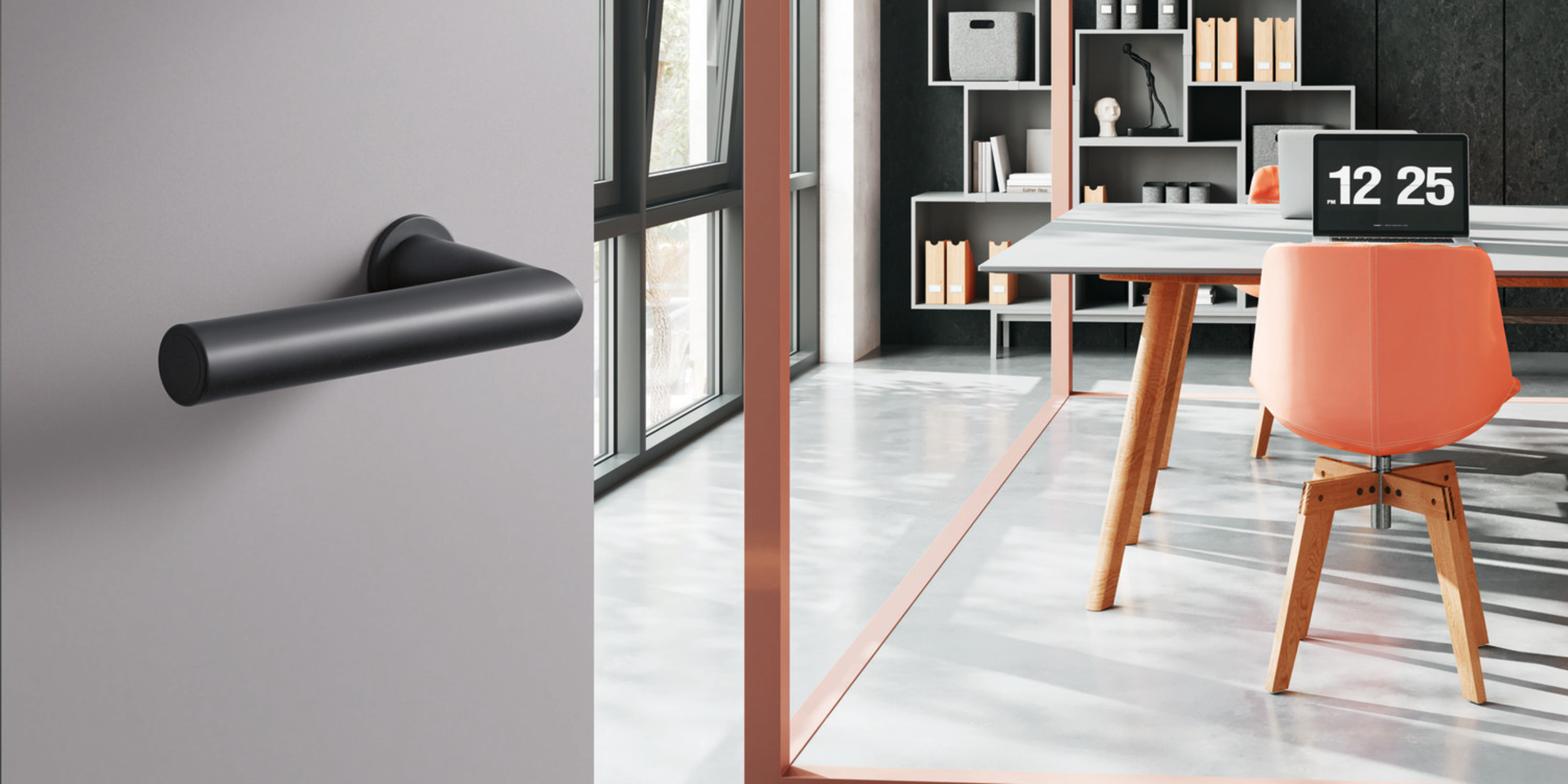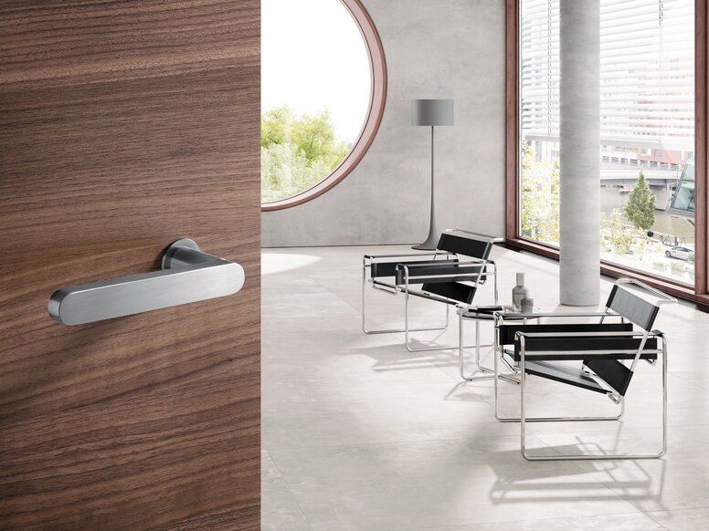 Das puristische Designkonzept vom System 162 überzeugt durch seine geradlinige Formgebung. Charakteristisches Gestaltungselement von System 162 ist der Gehrungsschnitt. Dieser wird durch die minimalistische Rosette besonders hervorgehoben.
