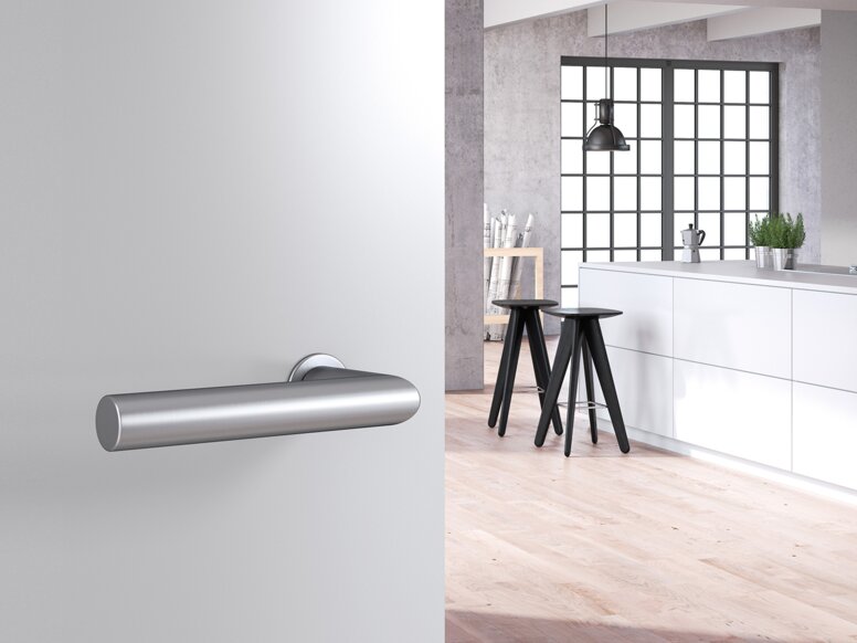 Mit der Designvariante mini bietet HEWI eine puristische Lösung für die Beschlagserie 270 und System 162. Die klare, reduzierte Gestaltung verzichtet bewusst auf überflüssige Schlüsselrosetten und unterstreicht so den minimalistischen Charakter. mini steht für eine zeitlose Formensprache, die moderne Architektur stilvoll ergänzt und Raum für gestalterische Freiheit schafft.