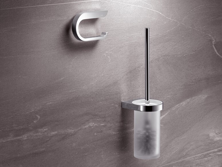 Für die Umsetzung dieses Design ist System 100 ideal. Es ist bis ins kleinste Detail durchdacht. Die Sanitär-Accessoires überzeugen durch ihre reduzierte Formensprache, clevere Funktionen, hohen Bedienkomfort und die Verwendung hochwertiger Materialien. Das alles macht System 100 zur perfekten Lösung für das Hotelbad. Erhältlich sind die Produkte in edlem Chrom mit Einsätzen aus satiniertem Kristallglas.