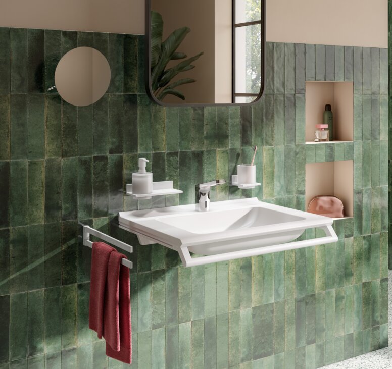 Die durchdachten Konstruktionen gewährleisten zudem eine komfortable Nutzung. Accessoires wie Handtuchhalter oder Seifenspender der Designvariante S 900 Q sind optisch ansprechend und praktisch.