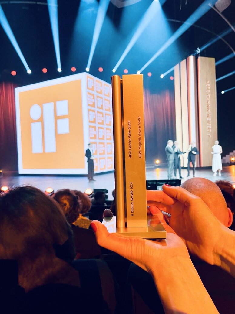 Der neuartige HEWI Magnetbrausehalter wurde in der Kategorie “Bathroom” jüngst mit der höchsten Auszeichnung geehrt, die die Designjury zu vergeben hat: dem iF Design Award 2024 Gold. Lediglich die 75 herausragendsten Lösungen aus den zahlreichen Einsendungen wurden mit der Auszeichnung Gold geehrt. Die Design-Jury betonte diesbezüglich: „Noch nie zuvor war diese Auszeichnung so exklusiv und wertvoll wie in diesem Jahr“. Der prämierte Magnetbrausehalter überzeugte die Jury besonders durch seine vereinfachte Handhabung, die allen Menschen hohen Duschkomfort bietet. Die feierliche Verleihung des Awards fand im Friedrichstadt-Palast in Berlin statt.