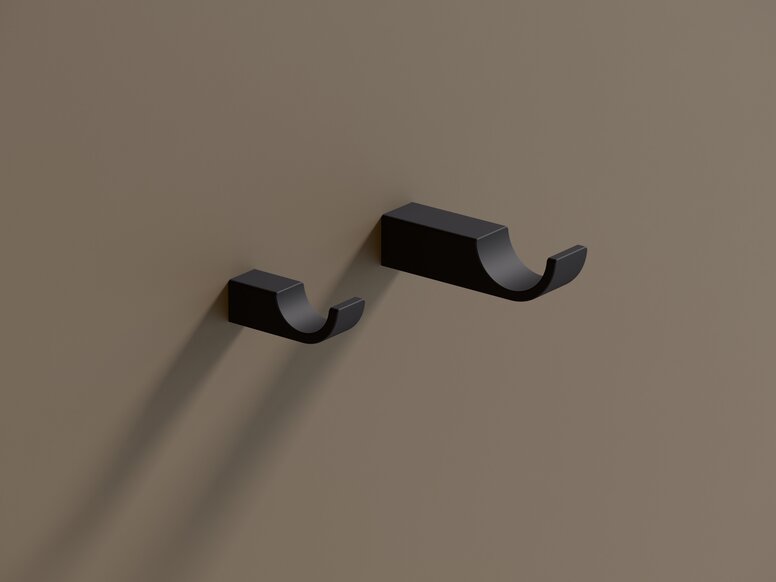 Liebevoll gestaltetes Detail: die Haken der Accessoires von System 800 gibt es nun auch in Schwarz matt und Weiß matt.
