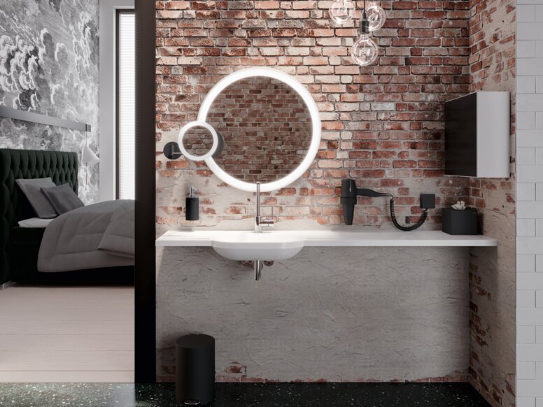 Die HEWI Bad-Accessoires sind mit allen HEWI Sanitärsystemen kombinierbar. Nutzende haben die Auswahl zwischen hochglänzenden Chromoberflächen und modernem, tiefmatten Schwarz. Damit ist das Bad-Zubehör von HEWI ideal geeignet für den Einsatz im Zuhause, im Hotel oder auch im Bereich Public. Darunter in Büros oder an anderen stark frequentierten Orten.