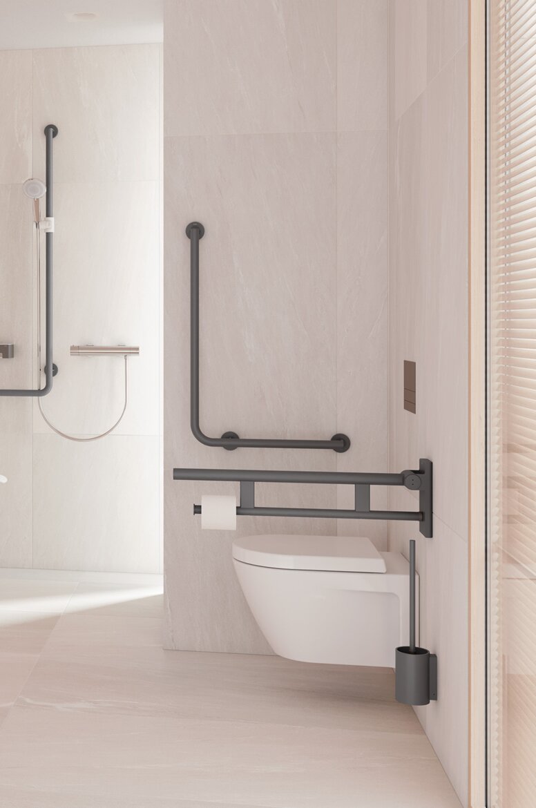 HEWI Stützklappgriffe sind in unterschiedlichen Längen erhältlich. Damit adressieren sie nicht nur die Bedürfnisse der Nutzenden, sondern erfüllen auch länderspezifische Anforderungen an barrierefreies Bauen.