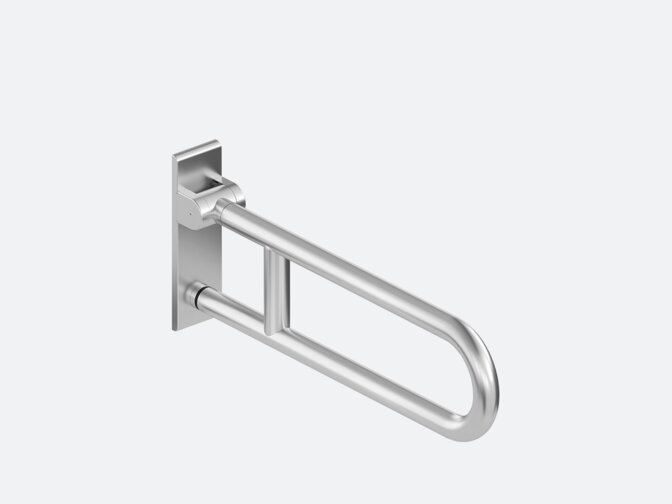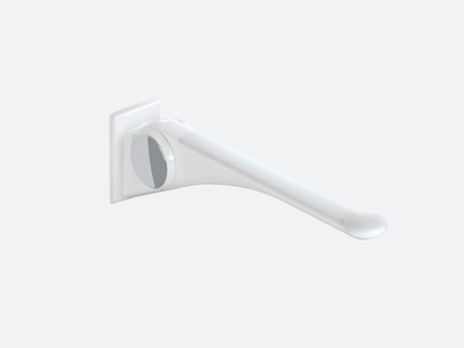 - Stützklappgriff Duo: Dieser verfügt zusätzlich über einen Unterholm in runder Ausführung, der das seitliche Eindrehen auf das WC optimal unterstützt