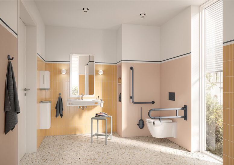 Sanitary areas and product solutions in "Design for all" are designed for long-term use. Since they adapt to people's changing needs, there is no need to remodel or replace sanitary products. Thanks to the long life cycle of the products, these bathrooms can be used across generations.
