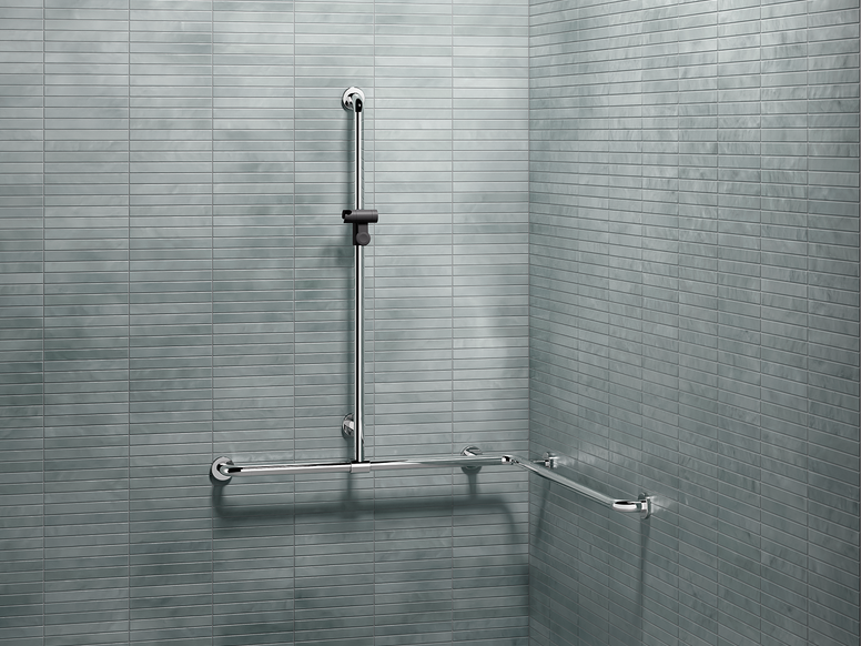 The WARM TOUCH version of the support rails, shower handrails and rails with shower-head holder from the 801 range have recently become available. The round tubular design combined with the high-quality chrome-look coating lends the products a sophisticated look that is warm to the touch.