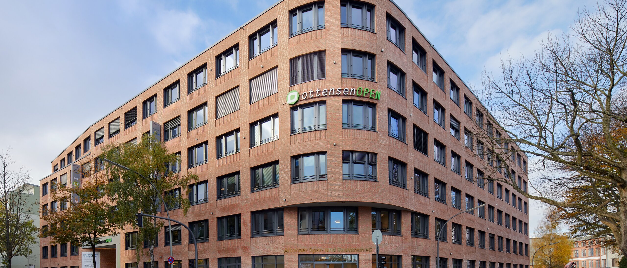 Le ottensenOpen dégage un mélange de calme et d'excitation. Les architectes ont combiné la cubature variée et passionnante du bâtiment avec ses creux et ses courbes avec une division régulière et calme de la façade. En même temps, l'immeuble de bureaux s'intègre de manière extrêmement harmonieuse dans l'architecture environnante d'Otten, qui se compose principalement de vieux bâtiments. Le bâtiment de six étages reprend les hauteurs existantes des maisons voisines. Afin d'améliorer encore l'intégration visuelle dans les bâtiments existants, les architectes ont créé une niche au cinquième étage à la hauteur des avant-toits des bâtiments voisins. À l'arrière de l'ottensenOpen, la structure de cinq étages a la forme moderne d'une cour commerciale. La cour intérieure est accessible par un passage de la Barnerstraße